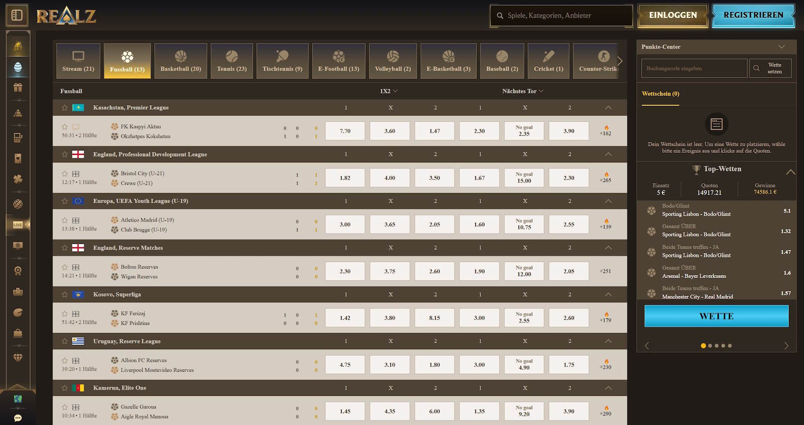 Mit vielen Wettoptionen
